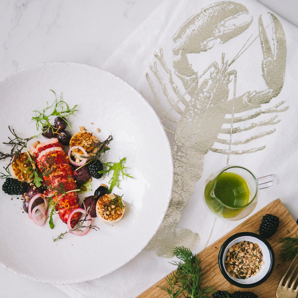 Torchon Homard Or/Blanc 50 x 70